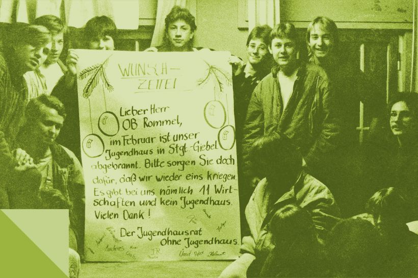 Zehn Jahre nach Gründung, ist der Stuttgarter Jugendhaus e.V. bereits Träger von neun Kinder- und Jugendhäusern. Die offenen Angebote dort prägen Künstler*innen wie Dodo Kromer und Werkpädagog*innen wie Günter Bundschuh. Puppenspieler, Töpfer oder Maler, organisieren Ausstellungen und Jahrmärkte. Im Jugendhaus Ost eröffnet die „Galerie am Berg“.