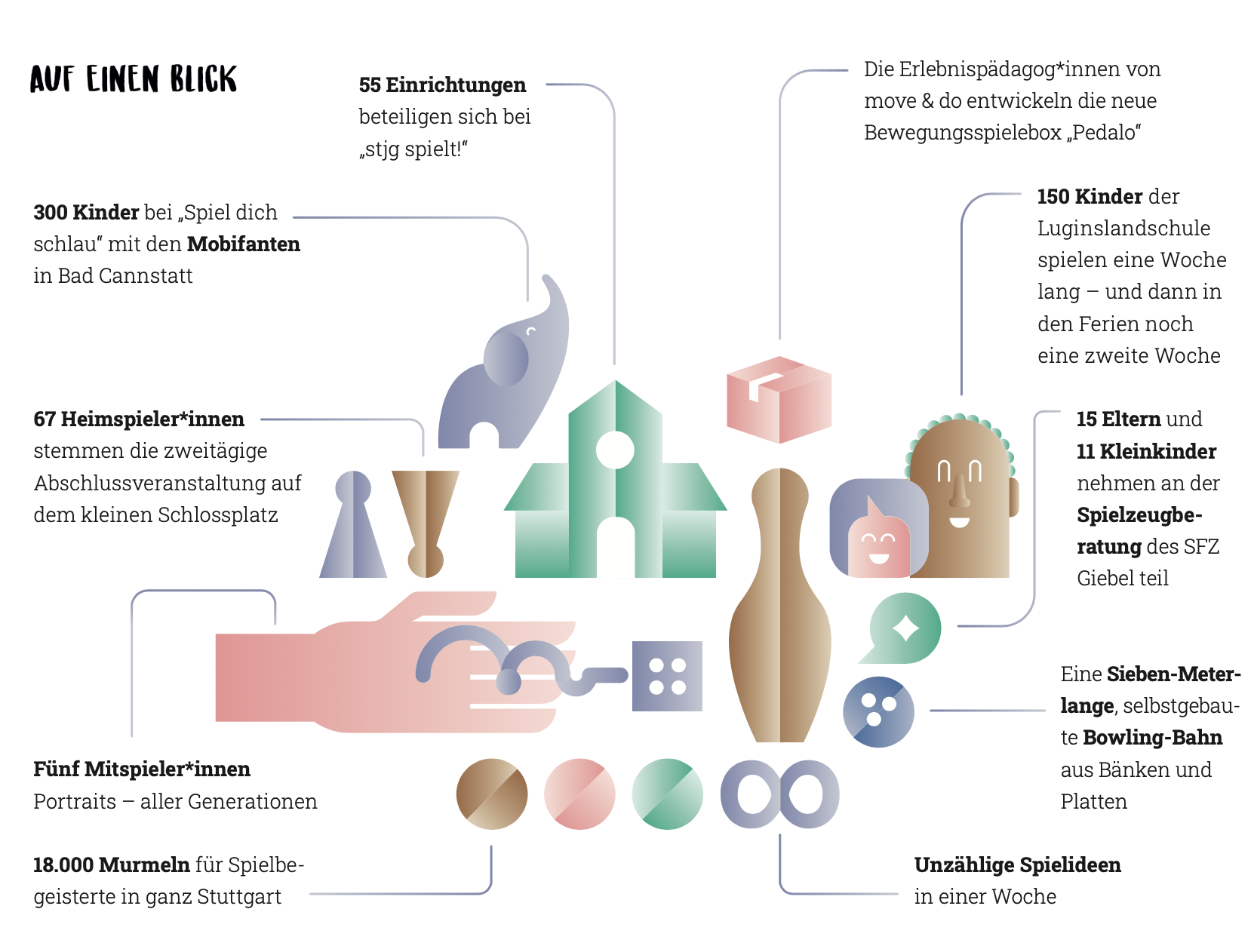 Alleine am Auftakt-Tag nahmen 34 Einrichtungen in ganz Stuttgart teil, die ganz »grün« zu Fuß, mit dem Fahrrad oder Öffentlichen Verkehrsmitteln über sechs verschiedene Touren erreichbar waren. Auf den Spielflächen, die unter den geltenden Corona-Regeln betreten werden durften, fanden sich Anleitungen und Material zu verschiedenen Themen, die Familien und Jugendliche selbstständig nutzen konnten.