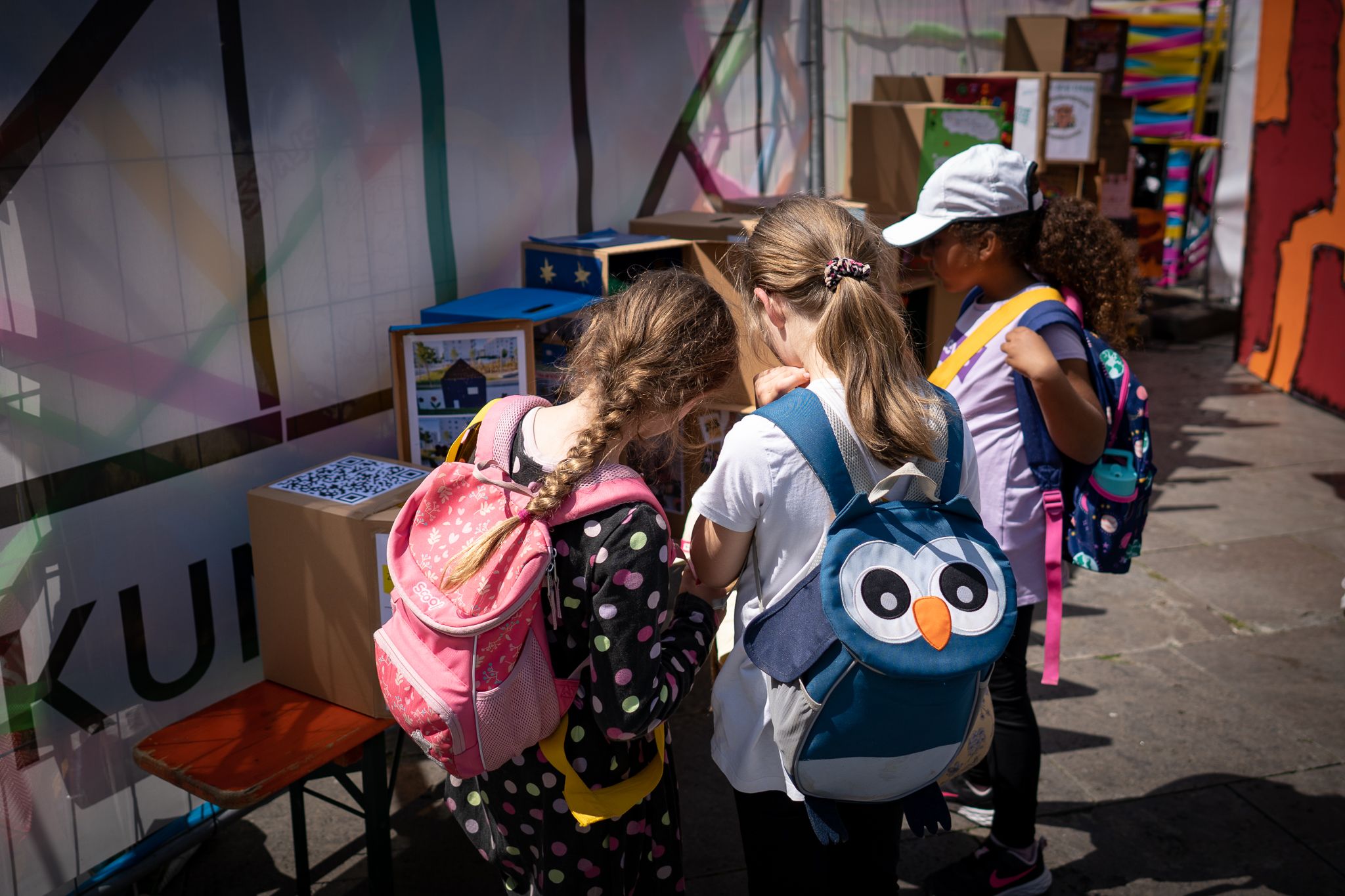 Im freiwilligen Angebot äußern Kinder ihre Wünsche für eine kinderfreundliche Stadt Stuttgart und ihren Stadtteil Hausen/Weilimdorf. Alle Ideen werden gesammelt und ausgestellt.